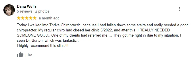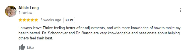 Disclaimer: Procedures and treatments performed by XXX - Thrive Family Chiropractic have an inherent success (and failure) rate. Reviews, testimonials and content on this site should not be interpreted as a statement of efficacy of procedures and treatments performed by XXX - Thrive Family Chiropractic for anyone else.